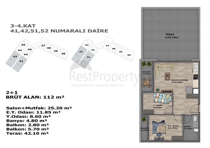 شقة 1+1 في ألتينتاس - حي أنطاليا