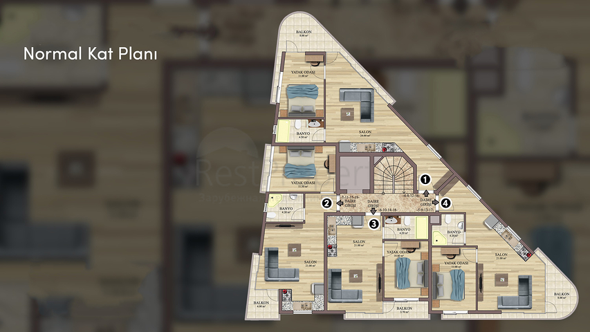 شقق دوبلكس 2 + 1 في حي البرسيمون-أنطاليا