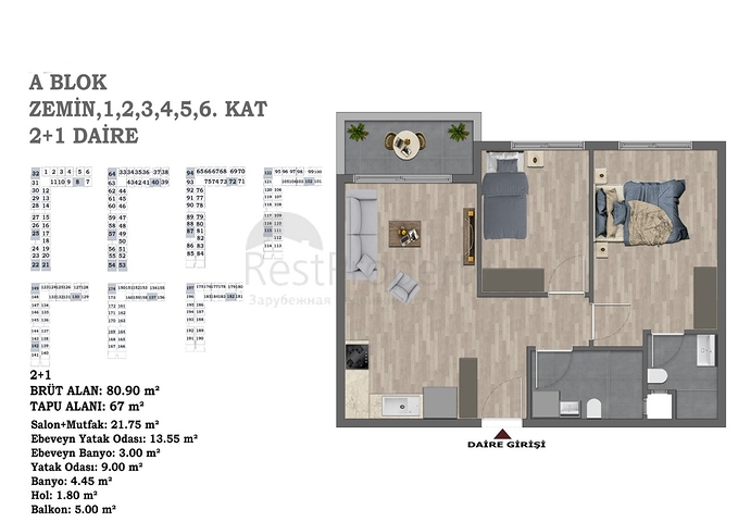 شقق 1+1 و 2+1 في منطقة بيليك أنطاليا