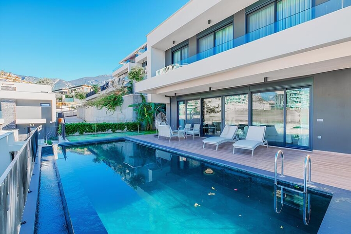 فيلا مفروشة واسعة مع تراس ومسبح محاط بالطبيعة
