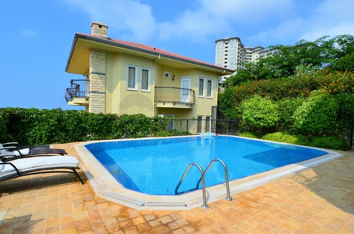 فيلا مفروشة واسعة مع تراس ومسبح محاط بالطبيعة